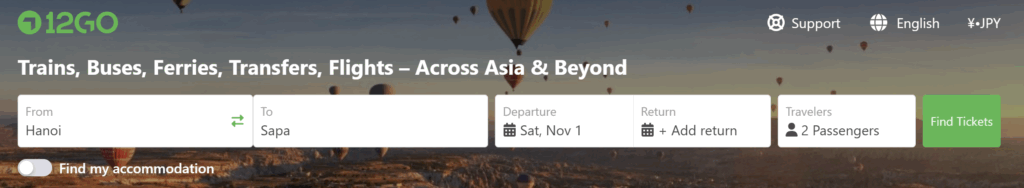 つまり、「東南アジアの交通まとめサイト」みたいなもので、現地でチケット売り場を探す手間がなく、旅の準備がぐっとラクになるのが特徴です。