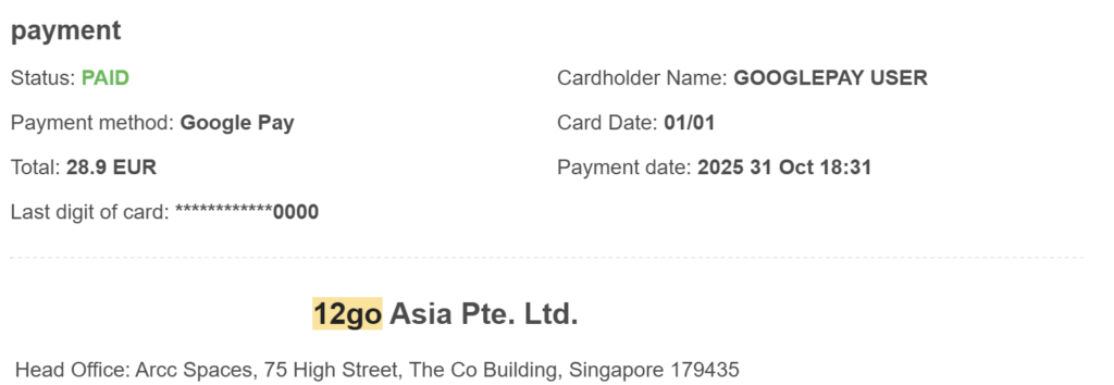 支払いの完了後、12GOを通してバス会社などへチケットが確保される手はずなのですが、ここでよくトラブルが起きる模様。完全にシステムの欠陥。