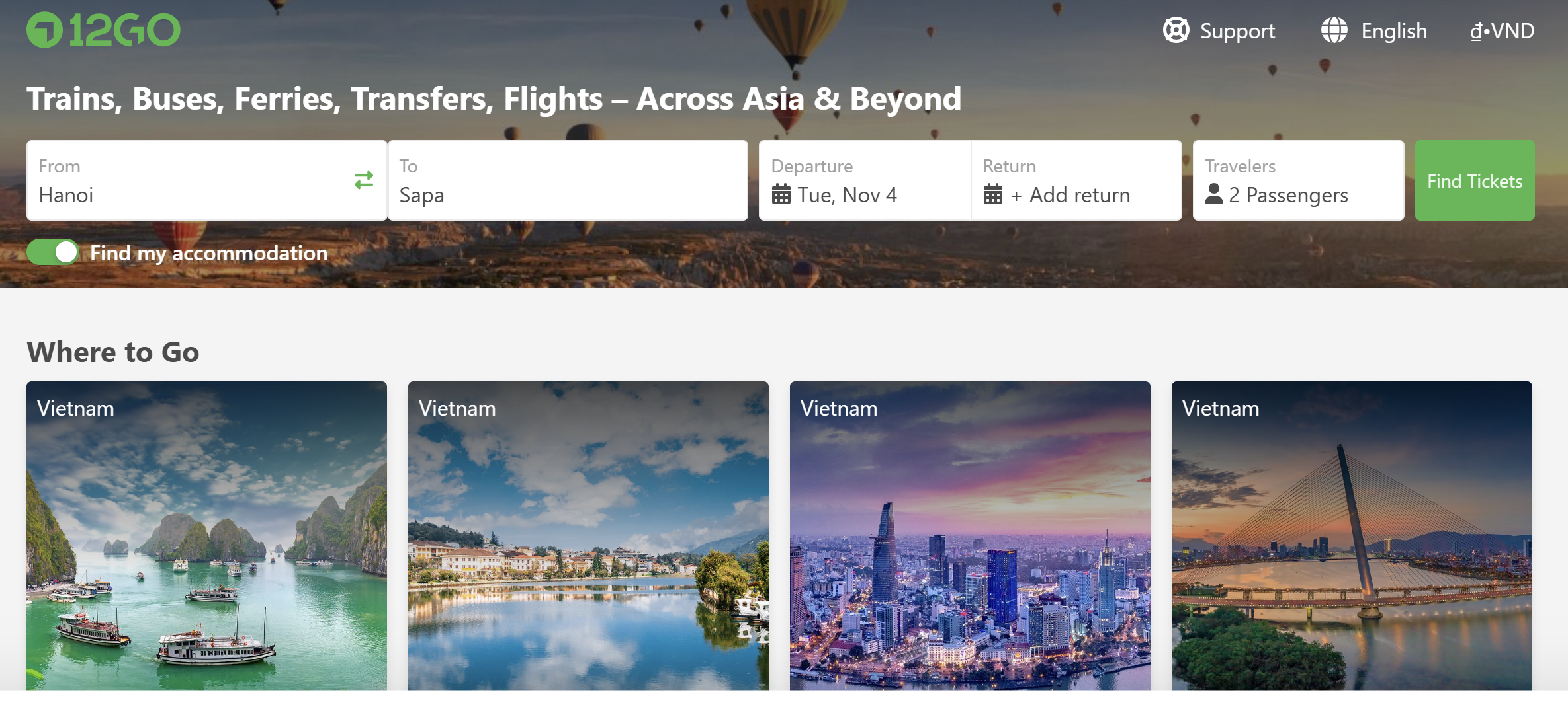 12Goは、東南アジアの移動チケットを予約できるサイトです。