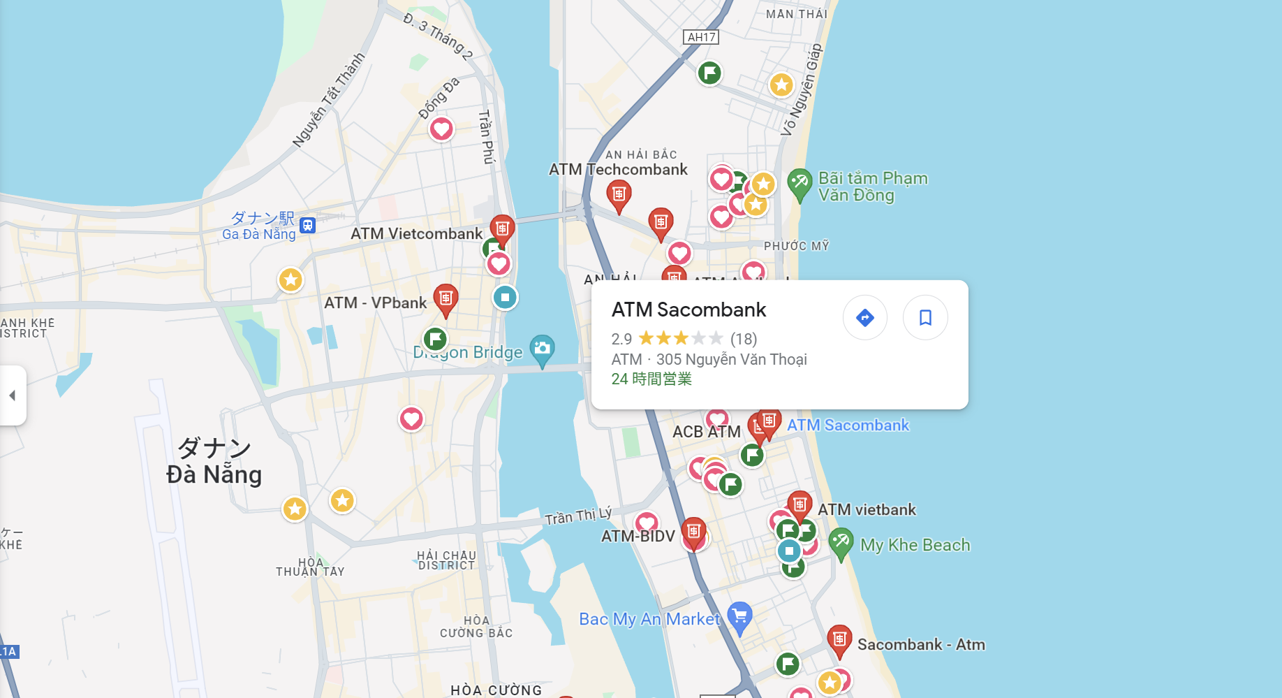 ↓の画像はダナンにあるSecombankですが、口コミが18件で2.9という低評価。